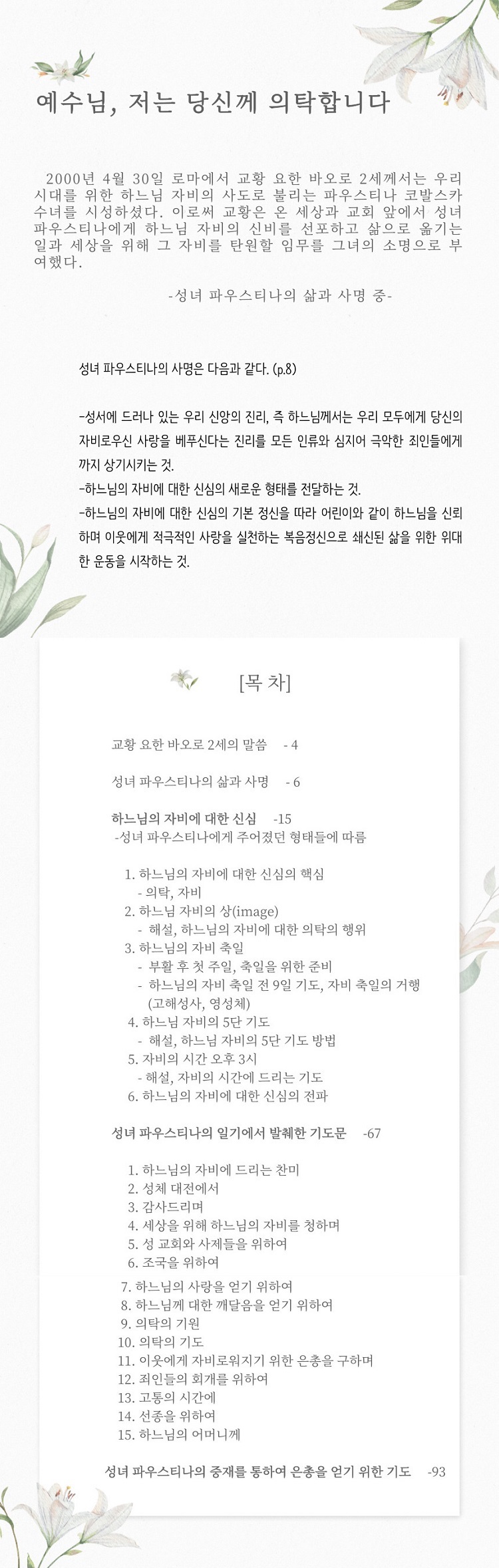 하느님의 자비에 대한 신심에 대한 내용이 담겨있는 책