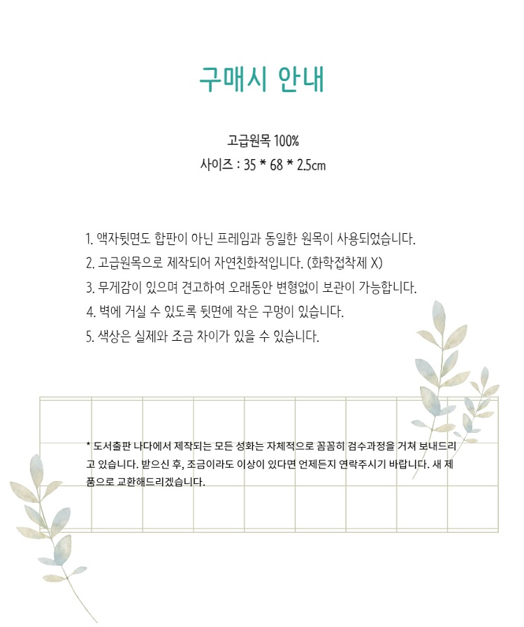 * 상품이 파손되었을 경우, 배송된 박스에 다시 담아 보내주셔야 반품/교환이 가능합니다.